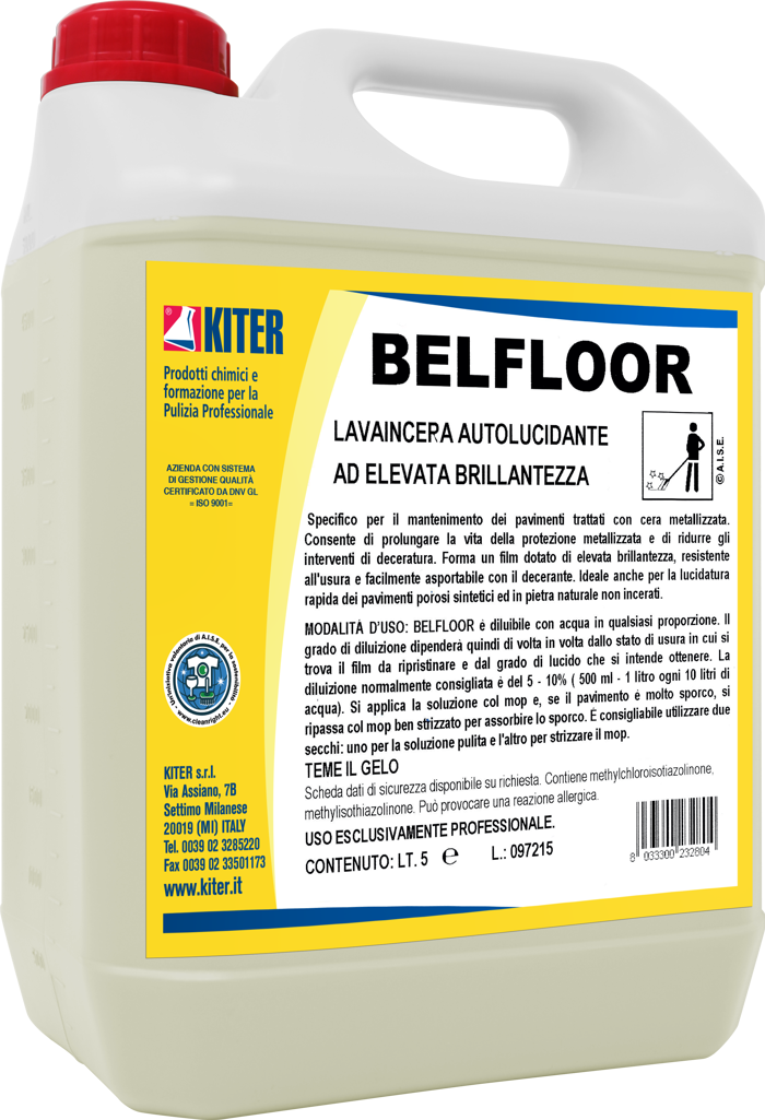 BELFLOOR LT.5 è una lavaincera acrilica autolucidante ideale per la manutenzione a umido di pavimenti trattati. Indicata per uso professionale, consente di detergere e creare una pellicola brillante e antiscivolo in un’unica operazione. Pulisce, protegge e prolunga la durata delle cere metallizzate, senza lasciare aloni. Formula diluibile in acqua, utilizzabile su superfici porose, sintetiche e in pietra naturale, escluso legno e pietra levigata a piombo.
