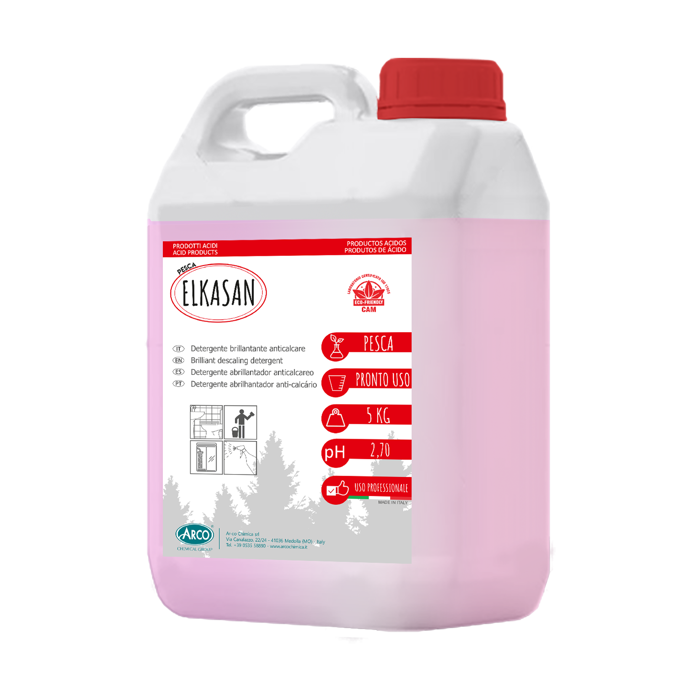 MANUTENTORE ACIDO BRILLANTANTE PER BAGNI PRONTO ALL’USO ELKASAN e' un manutentore a base di acido citrico, ideale per la manutenzione giornaliera di : lavandini, rubinetterie, sanitari, docce e rivestimenti ceramici. ELKASAN risulta ideale per l’eliminazione dei residui calcarei uniti a saponi. ELKASAN è un prodotto autoasciugante e brillantante che permette di eliminare l’operazione di risciacquo delle superfici pulite,lasciando nell’ambiente una gradevole e persistente profumazione. ELKASAN non provoca alterazioni alle cromature delle rubinetterie. ELKASAN ha due profumazioni: ELKASAN PESCA ELKASAN FRAGOLA.