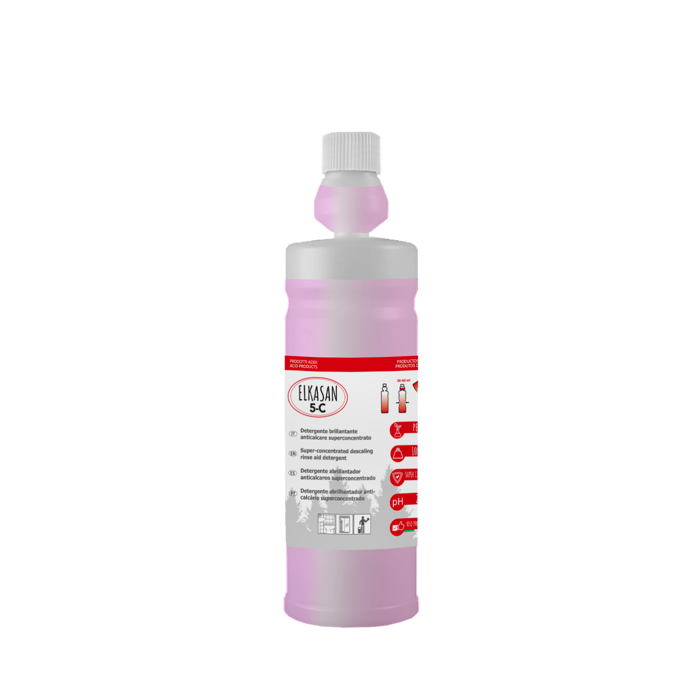 ELKASAN CONCENTRATO è un detergente acido a base di acido citrico, ideale per la manutenzione quotidiana di lavandini, rubinetterie, sanitari e docce. Conferisce lucentezza alle superfici e diffonde una piacevole fragranza di pesca. Il prodotto è rosa brillante, liquido, rapidamente asciugante, studiato per uso professionale. Pratico da dosare, si mischia facilmente con acqua per ottenere 1 litro di soluzione pronta all’uso. Consultare la scheda di sicurezza.