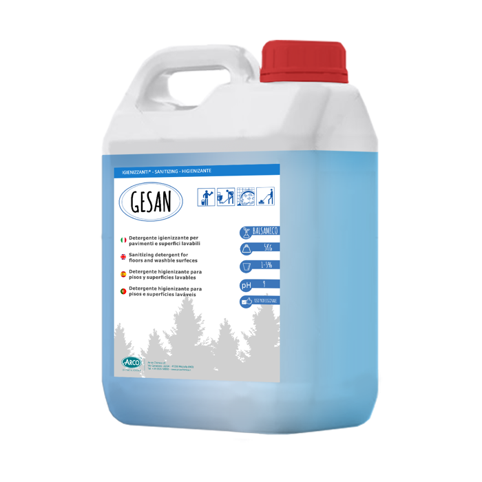 GESAN è un detergente igienizzante in tanica da 5 kg ideale per pavimenti e superfici lavabili di diversi ambienti professionali. Grazie ai sali quaternari d’ammonio, rimuove efficacemente microrganismi patogeni e sporco, garantendo pulizia e sanificazione in ospedali, ristoranti, comunità, industria alimentare e zootecnica. Adatto a protocolli HACCP, deve essere utilizzato esclusivamente da personale qualificato. Profumazione balsamica.