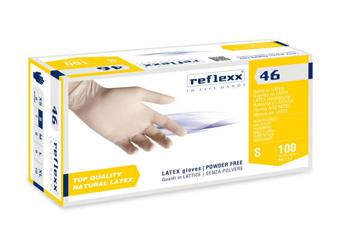 Guanti usa e getta Reflexx 46 in lattice naturale, alta qualità senza polvere per ridurre il rischio di allergie. Offrono resistenza allo strappo e ottima elasticità, con manica lunga e bordino per maggiore protezione. La superficie microruvida assicura una presa sicura. Idonei al contatto alimentare e conformi alle normative DPI e dispositivi medici. Confezione da 100 pezzi, misura S. Ideali per protezione e igiene in molteplici ambiti.