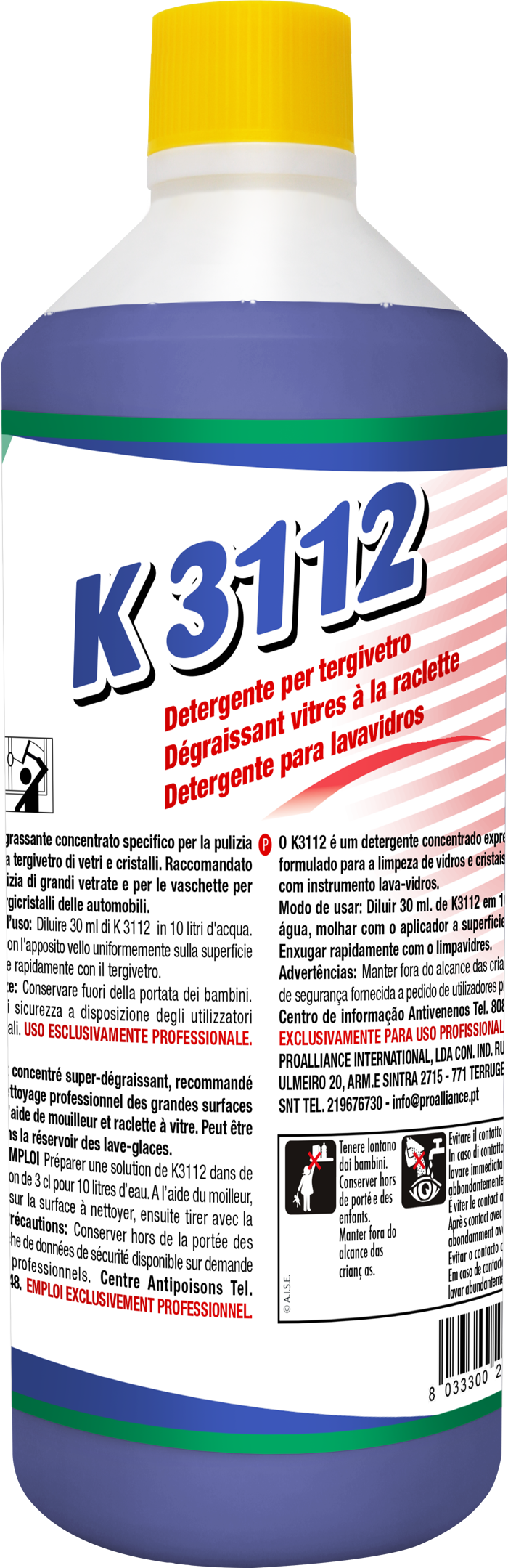 K3112 è un detergente concentrato per vetri e cristalli sviluppato per l’uso con tergivetro. Garantisce superfici trasparenti, brillanti e senza aloni. Agevola lo scorrimento della lamina in gomma, assicurando una pulizia uniforme. Effetto sgrassante, profumazione al limone, ideale anche per vetri di autoveicoli. Biodegradabile secondo regolamento UE. Uso professionale. Evitare il contatto diretto con occhi e pelle.