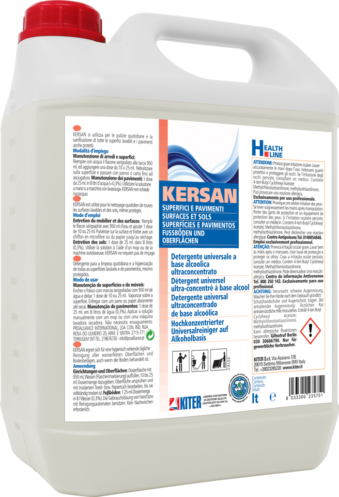 KERSAN 5L: detergente igienizzante neutro ultraconcentrato a base alcolica