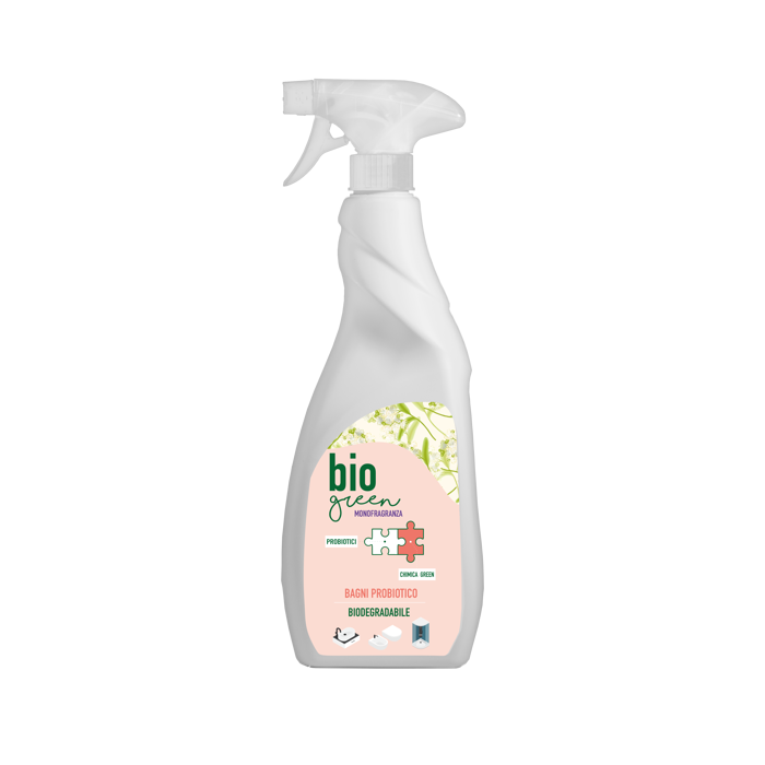 Bio green Mono Bagno probiotico è un detergente anticalcare per bagni a base di probiotici. Agisce efficacemente contro sporco e calcare lasciando le superfici brillanti. Formulato per la pulizia quotidiana di lavandini e vasche in ceramica bianca in bagno, box doccia e rubinetterie, fino ai lavelli in acciaio in cucina. Profumato e pronto uso. MODALITA’ D’USO Nebulizzare il prodotto direttamente sulla superficie o su una spugna, quindi rimuovere lo sporco e risciacquare accuratamente.