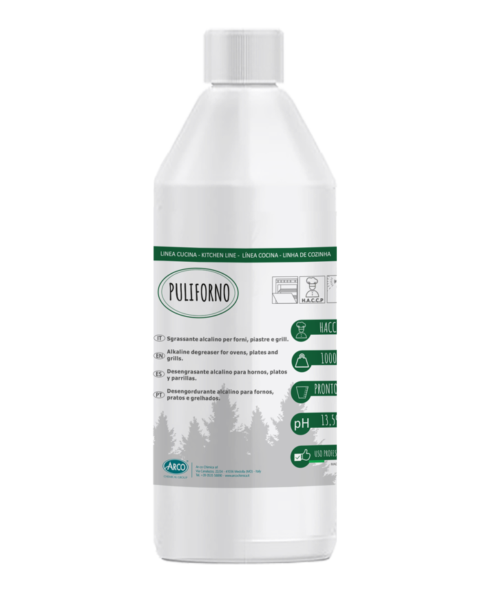 SGRASSANTE PER FORNI, PIASTRE E GRILL PULIFORNO è uno sgrassante altamente alcalino, indicato per la rimozione di depositi di sporco grasso misto a residui carboniosi su piastre di cottura, forni e grill. PULIFORNO grazie alla sua ormulazione di tensioattivi a bassa viscosità garantisce una efficace aderenza alle parti da pulire riportandole nelle condizioni originarie. PULIFORNO può essere utilizzato su superfici di acciaio vetrificato o smaltato, ghisa e acciaio inox. PULIFORNO non può essere utilizzato su alluminio e ferro stagnato.