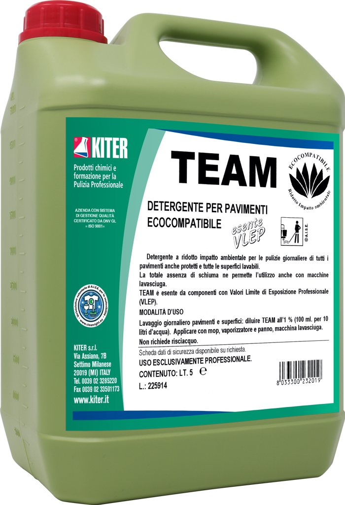 DETERGENTE PER PAVIMENTI ECOCOMPATIBILE ESENTE DA COMPONENTI CON VALORI LIMITE DI ESPOSIZIONE PROFESSIONALE (VLEP) CONFORME C.A.M.